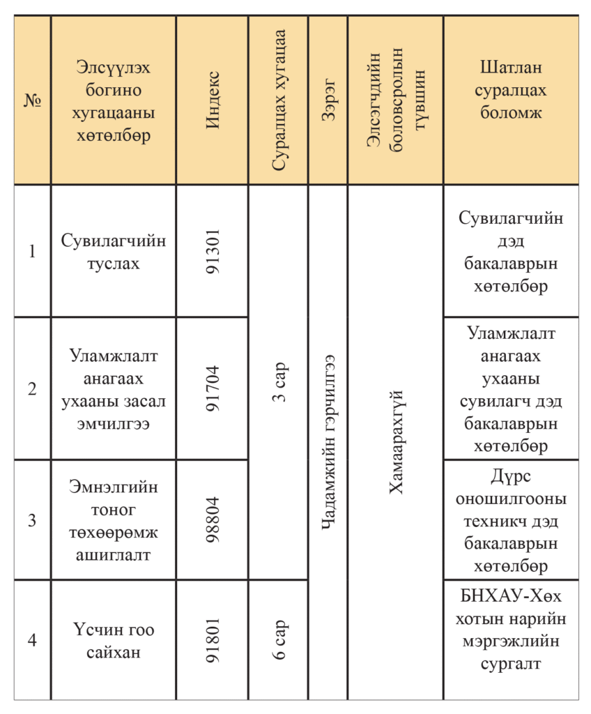 Сувилагч мэргэжлээр сурч байгаа бол голч оноо 2.8-аас дээш тохиолдолд